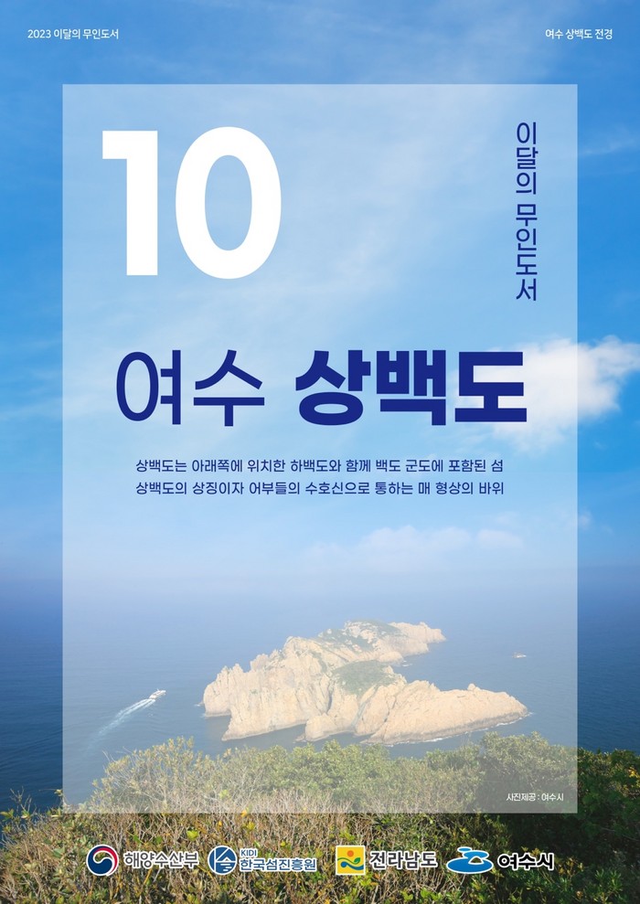 10일 한국섬진흥원(KIDI, 오동호 원장)에 따르면 최근 해양수산부가 여수시 삼산면 거문리 소재 상백도를 '10월, 이달의 무인도서'로 선정했다.