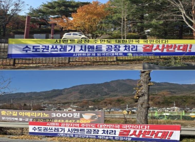 그동안 범대위는 수도권 쓰레기의 시멘트공장 반입을 우려해 지난해부터 시멘트공장으로의 직매립금지 폐기물을 결사반대하는 국회앞 1인 시위는 물론, 시멘트공장 인근에 현수막 대량 거치와 성명서 발표 등을 해왔다. 이를 무시한 지자체들이 지방계약법에 준해서 재활용업체와의 일방적 계약은 물론, 시멘트공장으로의 최종처리 계획을 승인했다는 것에 탄식을 금할 수 없다고 밝혔다.
