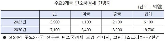 국내 2030년 탄소국경세 부담 최대 1.9조원