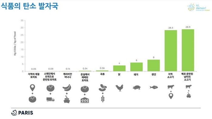 | ▲탄소발자국이 짙어질수록 지구는 위태롭다. 탄소배출이 가장 많은 빅5는 대륙간 이동하는 소고기, 지역 소고기, 어류, 돼지, 닭이 압도적이다. |
