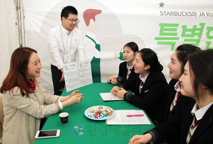 ㈜스타벅스커피 코리아가 2015년부터 교육기부 국제 NGO인 JA(Junior Achievement)와 함께 진행하는 청소년 진로교육 프로그램을 올해에도 이어나간다.