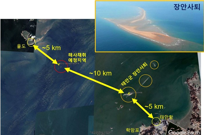 환경운동연합 바다위원회에 따르면,19일 태안군 관내 모래섬인 '울도' 인근 해역의 바다모래 채취 허가를 발표했다고 밝혔다.