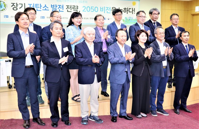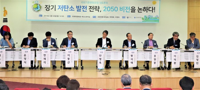 국회기후변화포럼(공동대표 홍일표, 한정애)이 24일 오후 의원회관에서 '장기 저탄소 발전전략, 2050비전을 논하다' 토론주제를 놓고 주제발표자와 패널들, 청중들의 주고받기식 토론회를 개최했다.