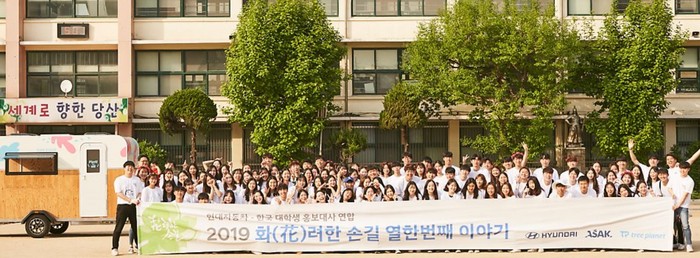이들은 현대자동차가 서울시, 대학생과 함께 서울 한 초등학교 안팎에 숲을 만들었다. 미세먼지 저감 효과가 있는 관목 500주를 심고, 공기정화식물인 이레카야자, 스파티필름, 드라세나, 립살리스 252주를 28개 학급에 나눠 집으로도 가져갔다.