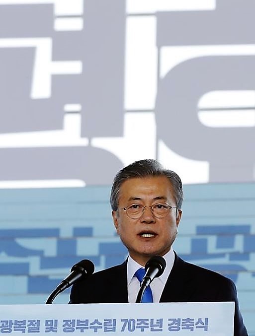 문 대통령은 15일 독립유공자에 대한 예우를 다하는 한편 '평화'를 주제로 한 메시지를 전세계에 발신했다.