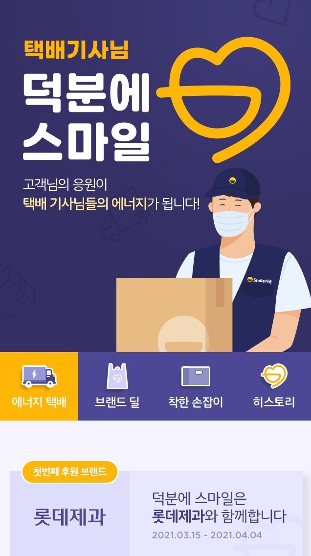 이번 '덕분에 스마일' 캠페인은 언택트 트랜드로 업무가 갑자기 늘어난 택배기사에게 응원의 마음을 전달하는 것이다.