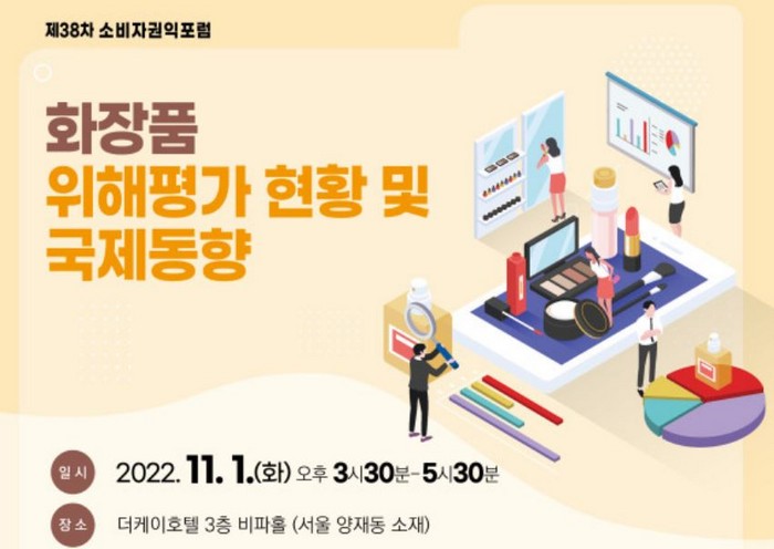 (사)소비자권익포럼(이사장 양세정)과 창원대 산학협력단에서 11월 1일 화 오후 서울 양재동 더케이호텔 비파홀에서 '화장품 위해평가 현황 및 국제동향'을 주제로 토론회를 개최한다.