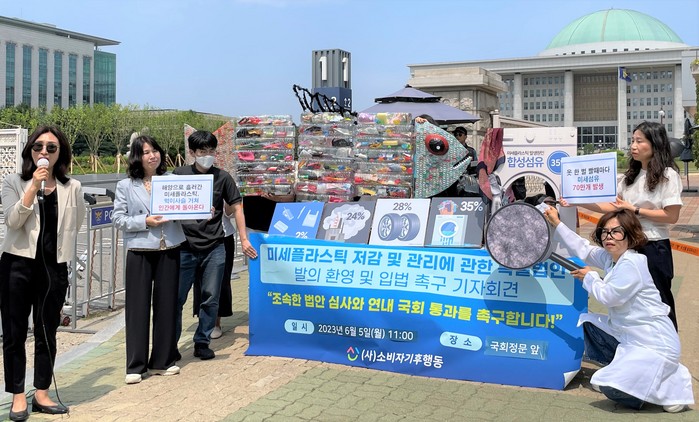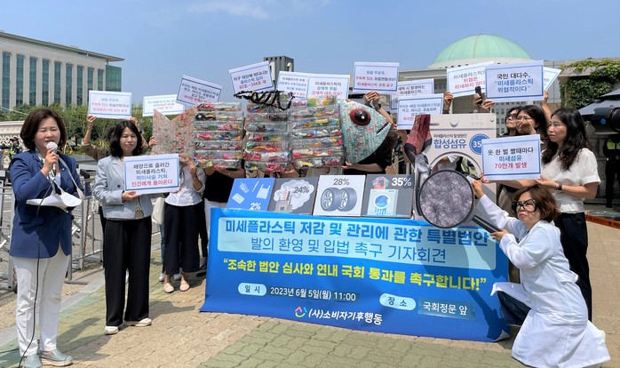 김은정 소비자기후행동 대표는 "미세플라스틱의 위험은 국경이 없으며 환경오염과 인류 생존 위협에 대해 이미 많은 국가들이 대응에 나서고 있다."며 "오늘 발의된 미세플라스틱 특별법이 꼭 통과돼서 모두의 건강과 기후위기 대응을 위해 꾸준히 힘을 모아주신 시민들의 노력이 결실을 맺기 바란다."고 말했다.