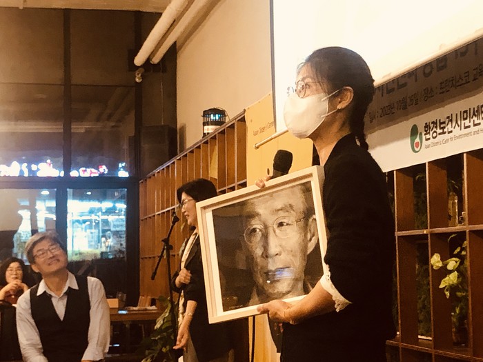 손수연 가습기살균제 피해자 가족을 대표해 '자신의 아이가 피해자'라며 "나에게 용기를 준 센터"라며 환경보건시민센터를 향해 고마움을 표현하고 세상으로 나아가는데 중심이 돼달라고 주문했다.