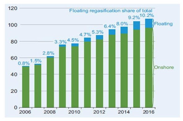 세계 LNG 재기화 용량에서 FSRU가 차지하는 비중은 2006년 약 0.8%에서 2010년 4.5%, 2015년 9.2%로 지속 확대되고 있다.