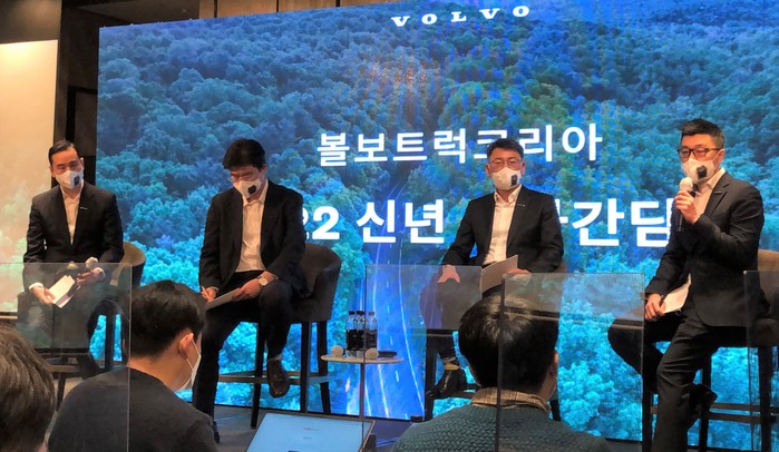 볼보트럭 코리아는 11일 오전 포시즌호텔에서 2022년 신년기자간담회을 열고 올해 비전과 국내 최초 나올 전기트럭에 제원 등을 소개했다.