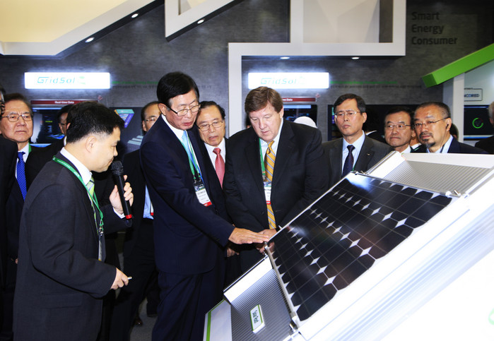 오늘 개막식에는 조환익 한국전력 사장, 노영민 산업통상자원위원회 위원장, 윤장현 광주광역시장, 노벨 물리학상 수상자인 독일 율리히 연구센터 피터 그륀버그 교수 등을 비롯한 전 세계 35개국에서 2000여명의 전력 분야 기업 CEO/CTO 및 국내외 산학연 전문가가 참석했다.
