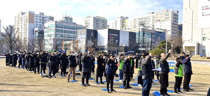 민간위탁회사에서 인천지방공사 자회사로 이관돼 2023년도 임금교섭도 무시당한 채 1월 29일, 30일 인천시청 잔디광장에서 투쟁을 결의하는 인천메트로서비스지부와 연대 투쟁을 개시했다.