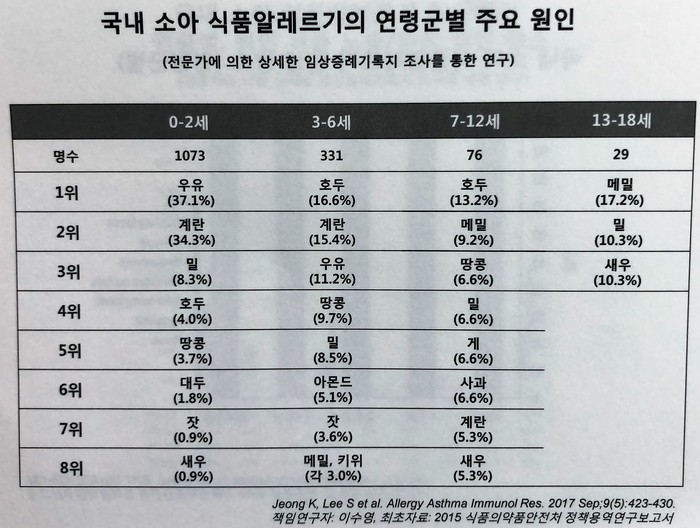 2015년부터 2017년까지 최근 3년간 한국소비자원의 소비자위해감시시스템(CISS)에 접수된 식품 알레르기 관련 위해사고 1853건 중 26.6%인 451건이 10세 미만 어린이로 나타났다.
