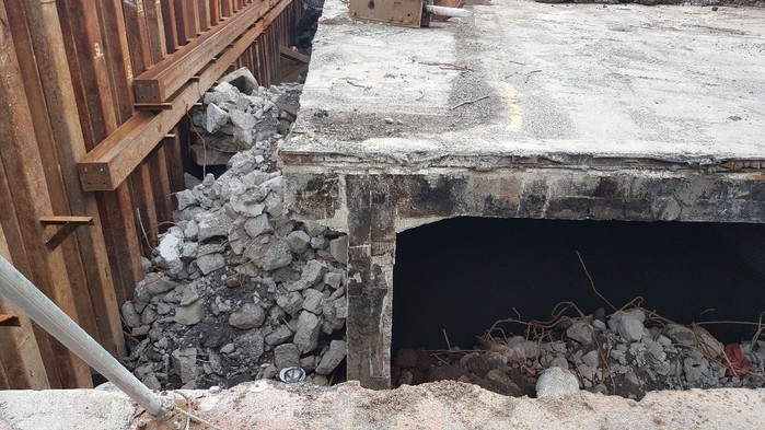 시공사는 향토기업인 영도종합건설은 다리를 철거하는 과정에서 독성이 강한 폐콘크리트(폐아스콘) 폐기물을 한천 지방하천으로 그대로 버렸다.