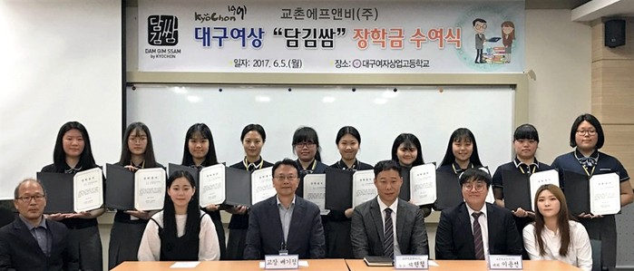 ▲교촌에프앤비㈜ 외식브랜드 ‘담김쌈’이 대구여자상업고등학교에서 장학금 수여식을 가졌다. |