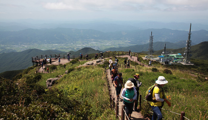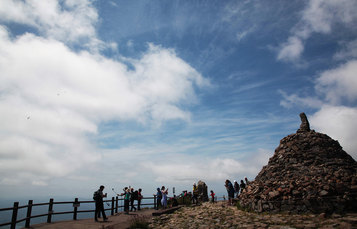 [환경데일리 이수진 기자]전남 구례군소재 지리산 노고단(1507m) 정상엔 성큼 가을이 다가옴을 알리는 고추잠자리떼가 비행을 하는 가운데 청명한 날씨와 하얀 구름, 저멀리 태극모양으로 굽이치는 섬진강과 구례읍의 아름다운 자연풍광을 막바지 피서객들이 선선한 천연바람을 맞으며 노고단의 아름다움을 만끽하고 있다.