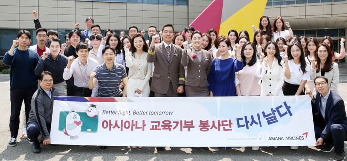 아시아나항공 교육기부 봉사단은 2013년 창단했다. 현직 운항승무원, 캐빈승무원, 항공정비 엔지니어, 운항관리사 등 항공 전문지식을 가진 직원들로 구성돼 있다. 업계 최초의 교육기부 전문 봉사단으로 출범 이후 총 3367회, 30만4696명 청소년을 대상으로 강연 활동을 펼쳐왔다. 이러한 공로를 인정받아 2014년부터 16년까지 교육기부대상을 3년 연속 수상했고, 2017년에 교육기부대상 명예의 전당에 헌액됐다.