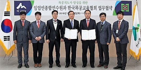 [환경데일리 이수진 기자]산림조합중앙회 임업인종합연수원(원장 이성권)과 한국목공교육협회(협회장 강호양)는 12월 20일 임업인종합연수원에서 상호발전 및 목공지도사 양성을 위한 협약을 체결했다.