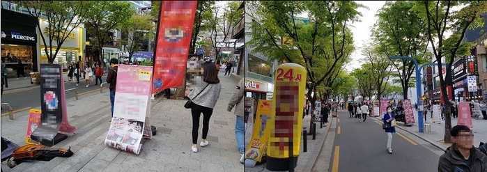 세계적인 관광지인 홍대라고 할 수 없을 만큼, 쓰레기, 홍보물지, 불법 현수막 배너와 간판들 때문에 한번 홍대를 가면 다시 가고 싶지 않는 이들도 많다.