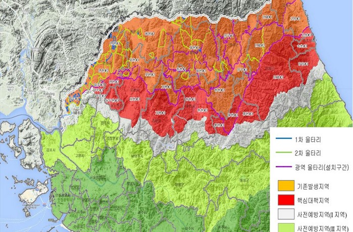 경기도 가평군과 화천군 등 백두대간 산악지역'핵심대책지역'은 기존 광역울타리와 새로 설치 중인 광역울타리 사이 지역으로 멧돼지 이동 차단, 확산 징후의 조기 포착 및 멧돼지 포획 등 대책역량을 집중한다.