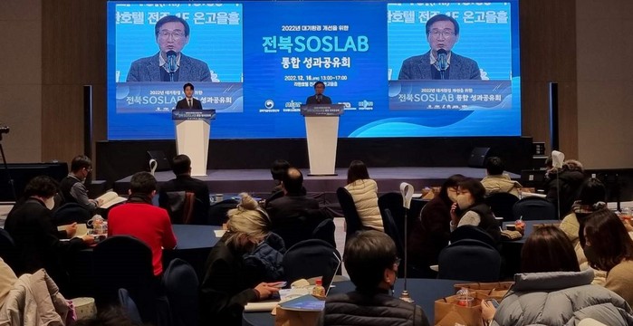 (재)전주정보문화산업진흥원과 한국전자기술연구원은 16일 라한호텔에서 주민들이 IT분야 전문가들의 도움을 받아 지역의 대기환경 개선에 나서는 전북SOS랩의 성과를 공유하기 위한 '2022 전북SOS랩 통합 성과공유회'를 개최했다.
