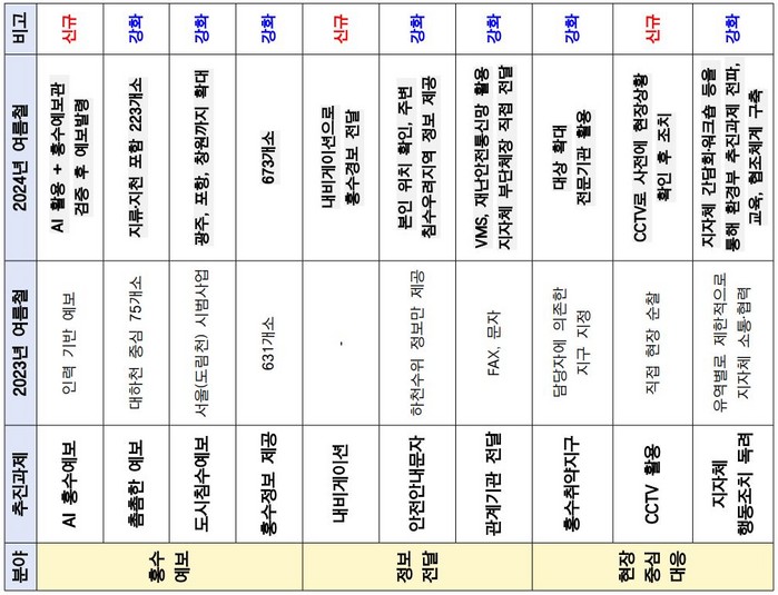 현장 중심의 대응역량 강화다. 국가하천 전구간(3,602km)에 사각지대가 없도록 설치한 CCTV을 활용해 피해상황을 신속히 확인함으로써, 실제 현장에 도착하기 전에 관계기관에 상황을 전파하는 등 대피시간을 더 많이 확보한다.