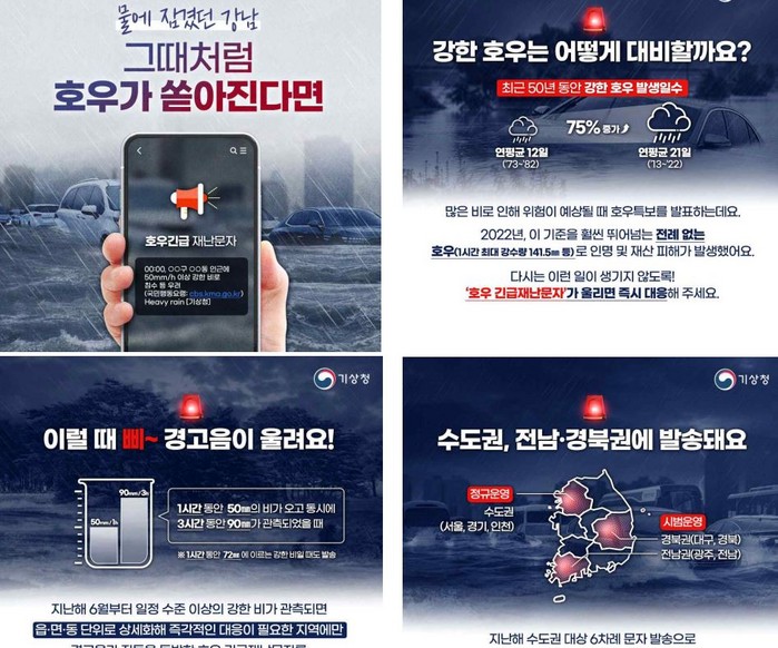 올해부터 처음으로 차량 운전자가 홍수경보 발령지점이나 댐 방류지점 부근을 지나면, 내비 음성으로 안내를 해줌으로써 지하도로와 같은 위험지역에 대한 안전운전을 유도한다. 홍수주의보‧홍수경보 알림 문자(CBS)는 개인별 핸드폰 위치정보(GPS)를 활용 '본인이 침수우려지역에 위치해 있는지 여부'와 '인근 침수우려지역지도'를 함께 제공해 위험지역을 신속히 벗어날 수 있도록 도와준다.
