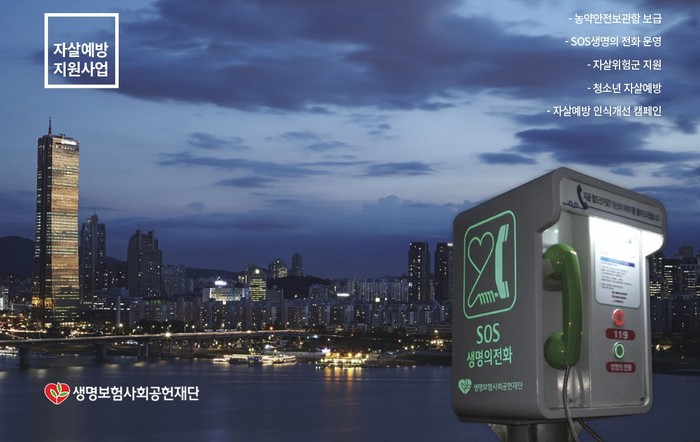 [환경데일리 이남일 기자]생명보험재단은 교량 위 최후의 보루 'SOS생명의전화'부터 농촌지역 음독자살 예방, '다 들어줄 개'까지 청소년 자살예방까지 일괄된 사업을 펴왔다.