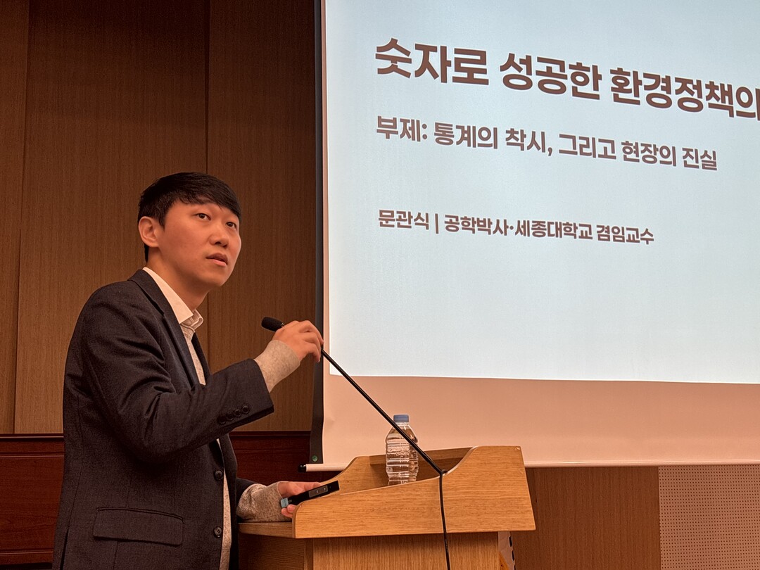 첫 번째 기조강연에 나선 문관식 세종대학교 겸임교수는 '숫자로 성공한 환경정책의 한계' 주제로 한국 환경정책의 구조적 문제를 짚었다.
