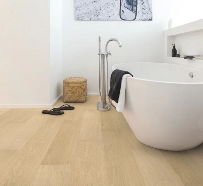 | ▲물기가 많은 욕실 화장실에서 끄덕없는 퀵스텝 마루바닥재가 선풍적으로 인기를 끌고 있다. |