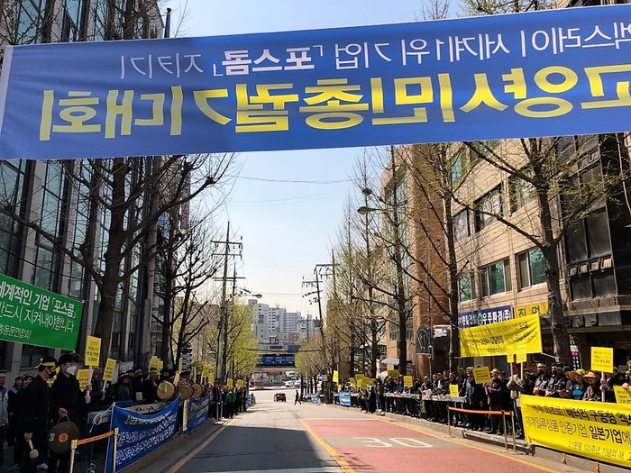 오광진 백마초 동문회장은 "우리 동문들은 고양시의 원주민들이 배출한 세계 일류기업 포스콤을 지키기 위해 목숨 걸고 투쟁 하겠다."며 포스콤의 공장 등록 취소 철회를 촉구했다.