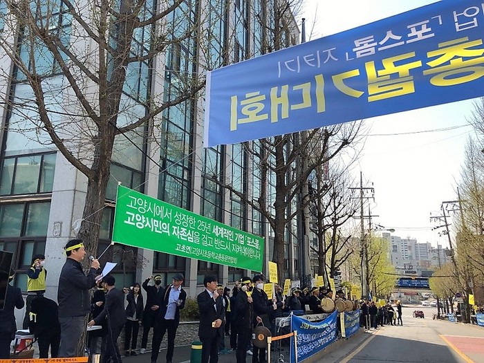 이어 "고양시민들께선 아직도 고양시에 거주하고 있는 17만 명의 원주민들을 믿고 세계적 기업으로 성장한 고양시 기업 포스콤 죽이기에 나선 이재준 시장 탄핵에 동참해 달라."고 호소했다.