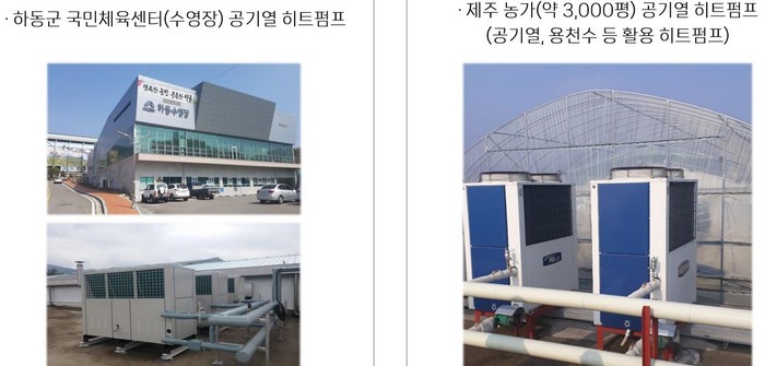 우리나라 히트펌프 보급에 참여하면 융자사업을 통해서 가능하다. 에너지효율 1등급 히트펌프로 교체시 70~90%까지 지원해준다. 건축물 냉방설비 의무인 공공시설 경우 60%이상 설비용량 경우 심야전기, 집단에너지, 신재생에너지 등으로 이용하도록 돼 있다. 물론 연면적 1000m2 건축물 신증축중 개체할 경우 의무대상이다.