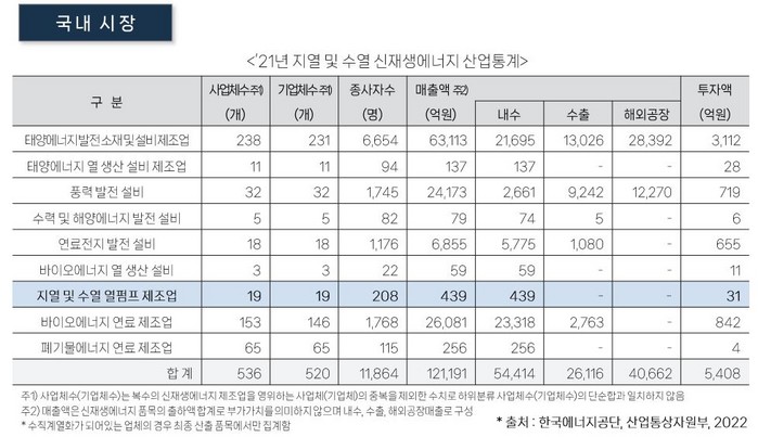 국내 히트펌프 판매시장은 저조한다. 21년 연 73만대, 최근 5년 사이 64만대 판매했다.