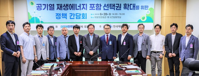 산업계 의견을 청취하기 위해 송갑석 의원은 28일 오후 2시 국회에서 '공기열 재생에너지 포함 선택권 확대'를 위한 정책 간담회를 개최했다.
