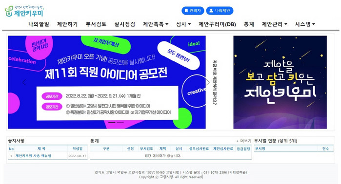 고양시는 제안제도 개선과 효율화를 위해 제안 제도에 특화된 맞춤 플랫폼 개발에 착수했다. 고양시가 자체 개발한 '제안키우미'는 제안의 접수에서 부서의견 작성, 심사, 채택된 제안에 대한 실시 점검 등 사후관리까지 가능하다.