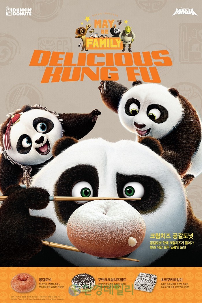 [환경데일리 유혜리 기자]던킨도너츠가 다가오는 5월 '이달의 도넛'으로 드림웍스 인기 캐릭터 '쿵푸팬더'를 활용한 도넛 3종을 선보이고 관련 프로모션을 진행한다고 밝혔다.