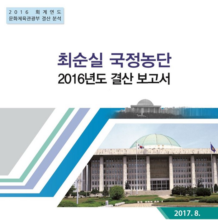 최순실 국정농단의 중심 무대인 문체부 결산을 앞두고 펴낸 보고서에는 최순실 일당이 관여한 사업에 문화체육관광부의 예산이 대거 투입된 정황과 그 근거자료들이 상세히 기재 돼 있다. 분석기간 6개월, 분량만 110페이지에 달한다.
