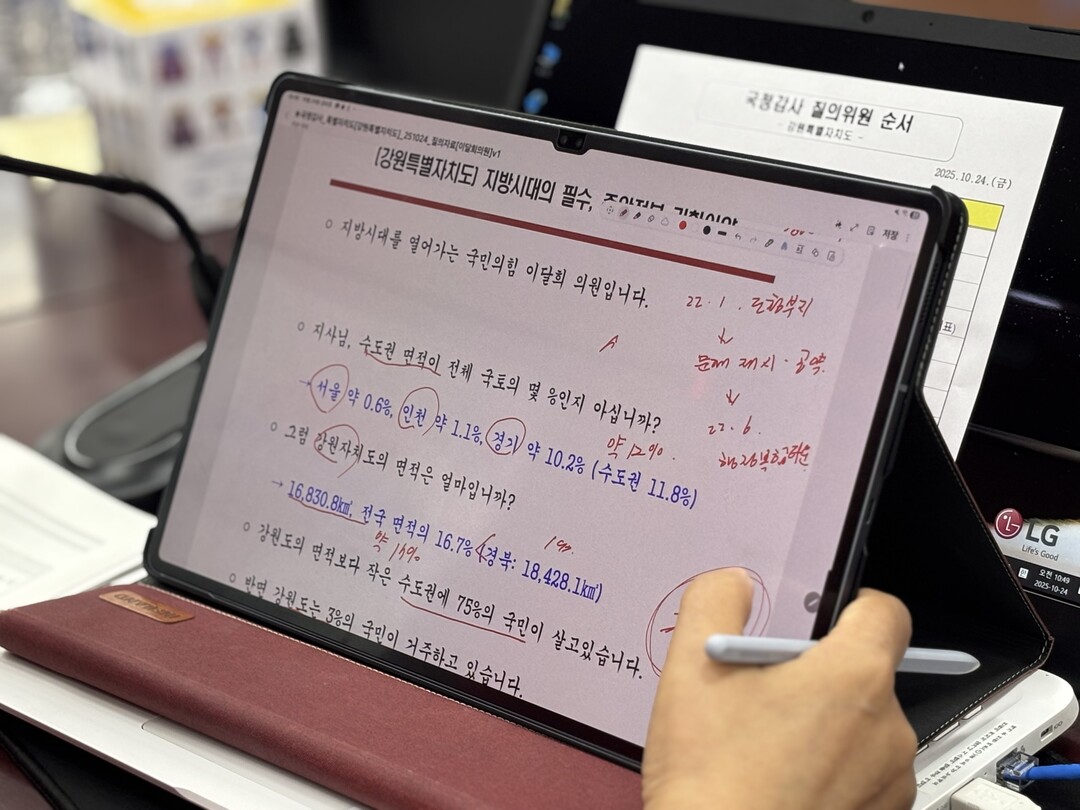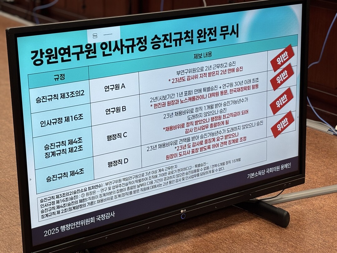 국회 행정안전위원회(위원장 서범수)는 광역시도 중 강원특별자치도 2025년도 국정감사가 24일 도청에서 열렸다. 이날 더불어민주당 소속 위원으로 윤건영·권칠승·양부남·위성곤·이광희·이상식 의원, 국민의힘은 이달희·이성권 의원, 기본소득당은 용혜인 의원이 참석했다.