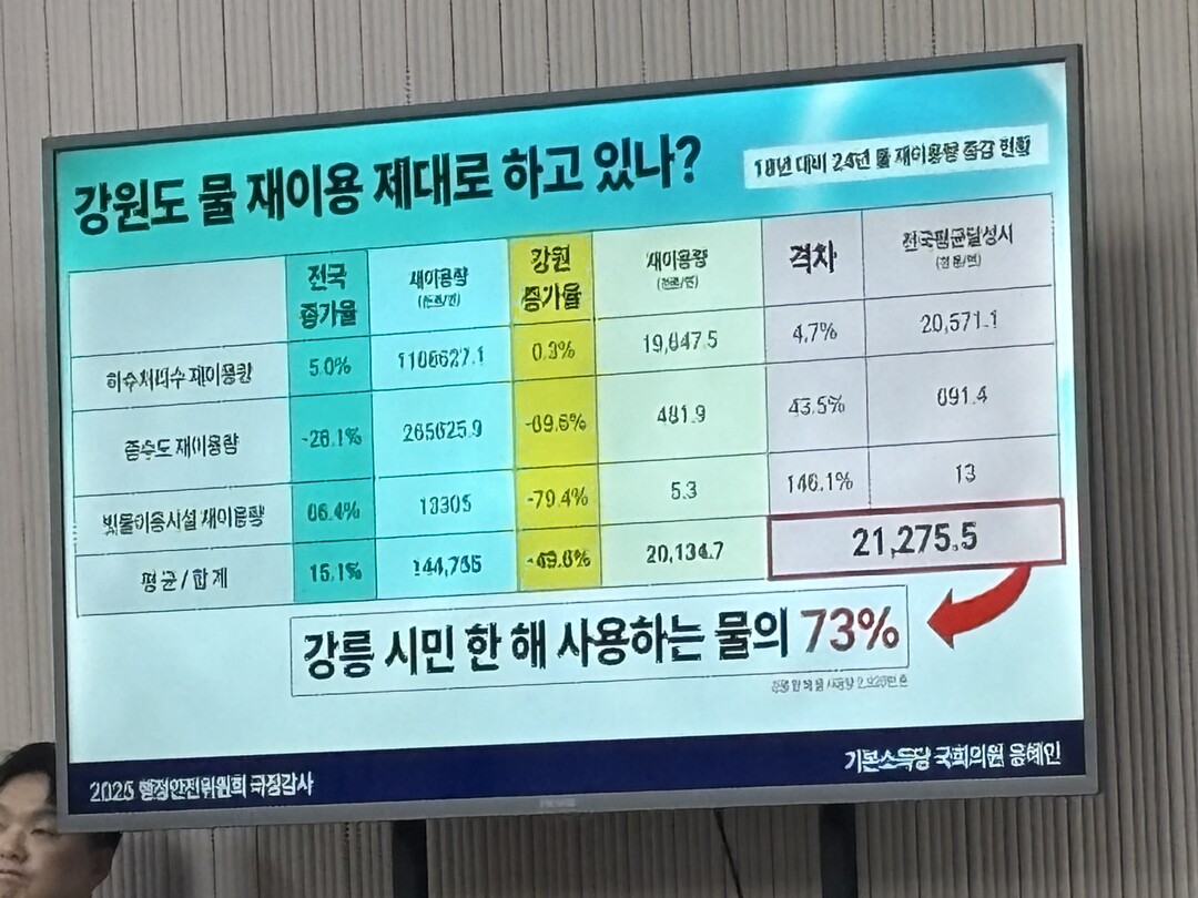 환경부의 2023상수도 통계에서 강릉시의 누수율은 24.1%로 전국 평균 9.9%보다 2.5배 가량 높은 데다, 강원 평균 20.7%보다도 더 높았다. 서울시 1.6%보다 15배, 대구 대전 2.4%보다 10배 가량 높다.