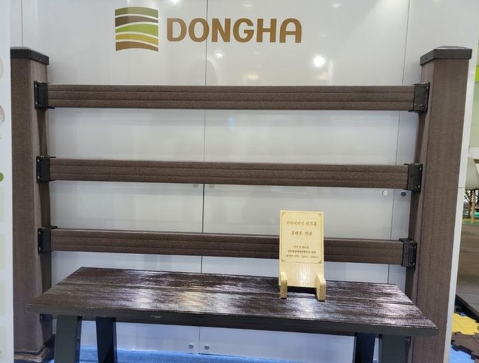 ▲커피찌꺼기 변신은 무죄, 2022 대한민국 친환경 대전에서 선보인 (주)동하는 커피 소비 1위인 우리나라에서 가장 많이 배출되는 커피찌꺼기를 가지고 나무데크, 벤치 등 다양한 제품을 생상할 수 있다고 일반인에게 공개됐다. |