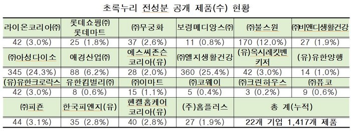 환경부-기업 간 협업 22개 기업 1500여 개 제품