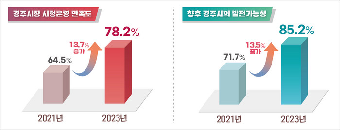 [환경데일리 고용철 기자]경주시 발전가능성 물음에 시민 85.2%가 긍정, 미래 경주발전 큰 희망 확신을 갖고 있는 것으로 조사됐다.