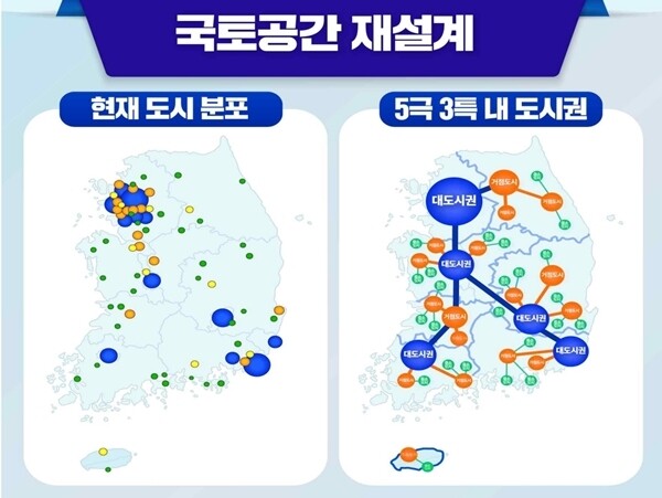 이 대통령은 국정과제중 하나로 지난 3년간 멈춘 '성장 회복'을 초점을 맞췄다. 배경은 수도권 집중이 성장 잠재력을 훼손했는데 대안으로 '5극3특'정책을 내놓았다.