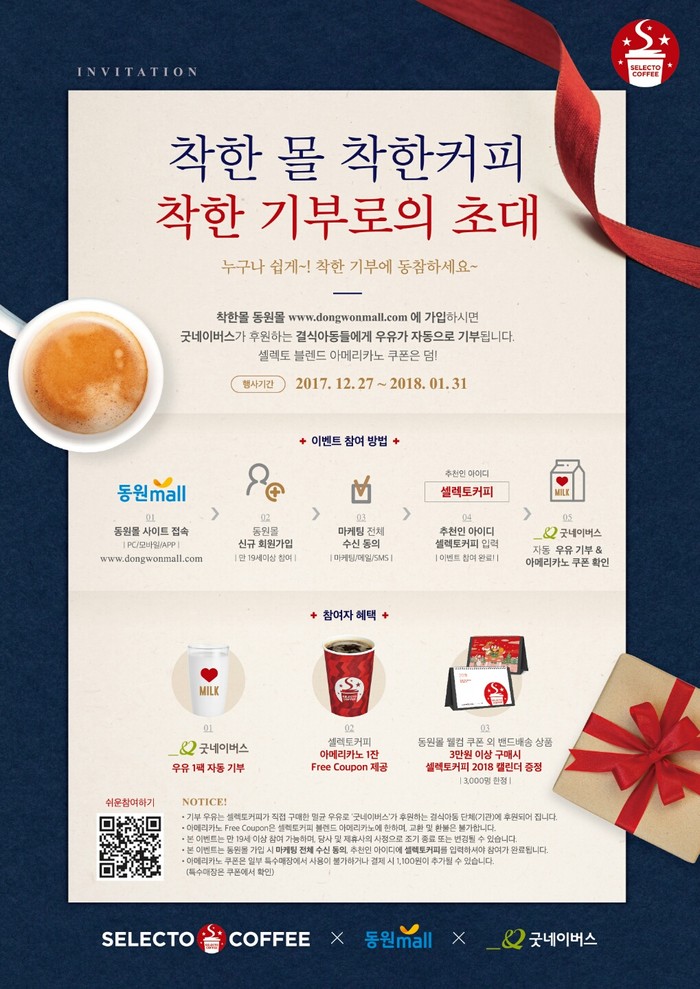 또한 신규 가입자들에게는 기부의 기쁨과 함께 셀렉토커피 블렌드 아메리카노 쿠폰도 증정한다.