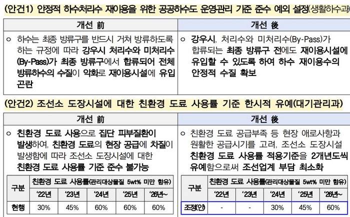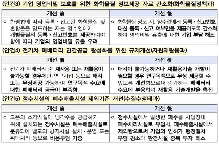 또 다른 안건으로 규제완화된 소각장 내 냉각수 등 공급을 위한 정수시설을 폐수배출시설에서 제외함으로써, 행정절차 부담과 시설 중복 투자 문제를 해소한다.