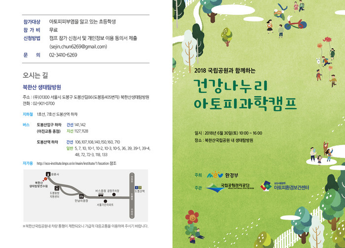 [환경데일리 김영민 기자]2018 건강나누리 아토피과학캠프가 오는 30일 북한산국립공원 생태탐방원에서 열린다.