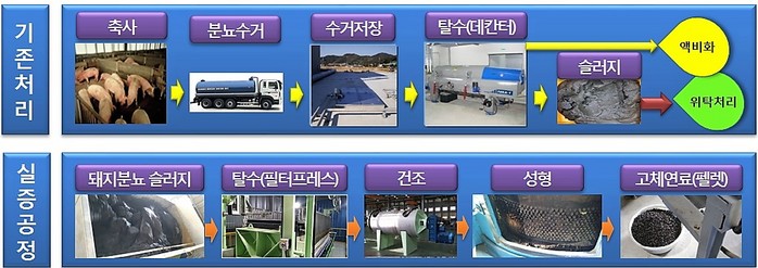 현장 시연에서는 탈수, 건조, 성형 등 공정과정을 거쳐 수분함량을 줄인 돼지분뇨를 고체연료로 생산해 향후 발전소 연료(혼합 대체연료)로 활용 가능한 돼지분뇨 고체연료화 실증기술을 선보일 예정이다.