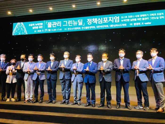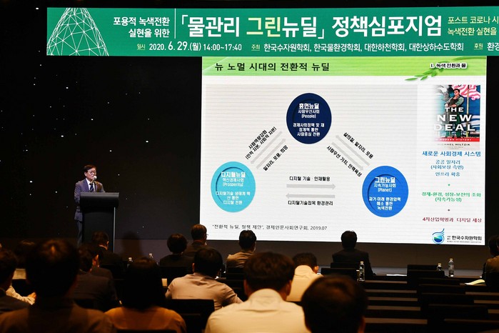 '물관리 그린뉴딜 정책심포지엄'은 대한상하수도학회, 대한하천학회, 한국물환경학회, 한국수자원학회가 공동으로 주최하고 환경부와 한국수자원공사(K-water)가 후원했다.